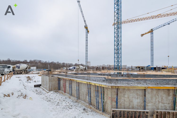 На строительной площадке проекта «Аквилон RekaPark» идут работы по устройству стен и перекрытий подвала, а также гидроизоляции цокольной части здания. Строители приступили к возведению монолитных стен 1 этажа. Готовность проекта – 12%.