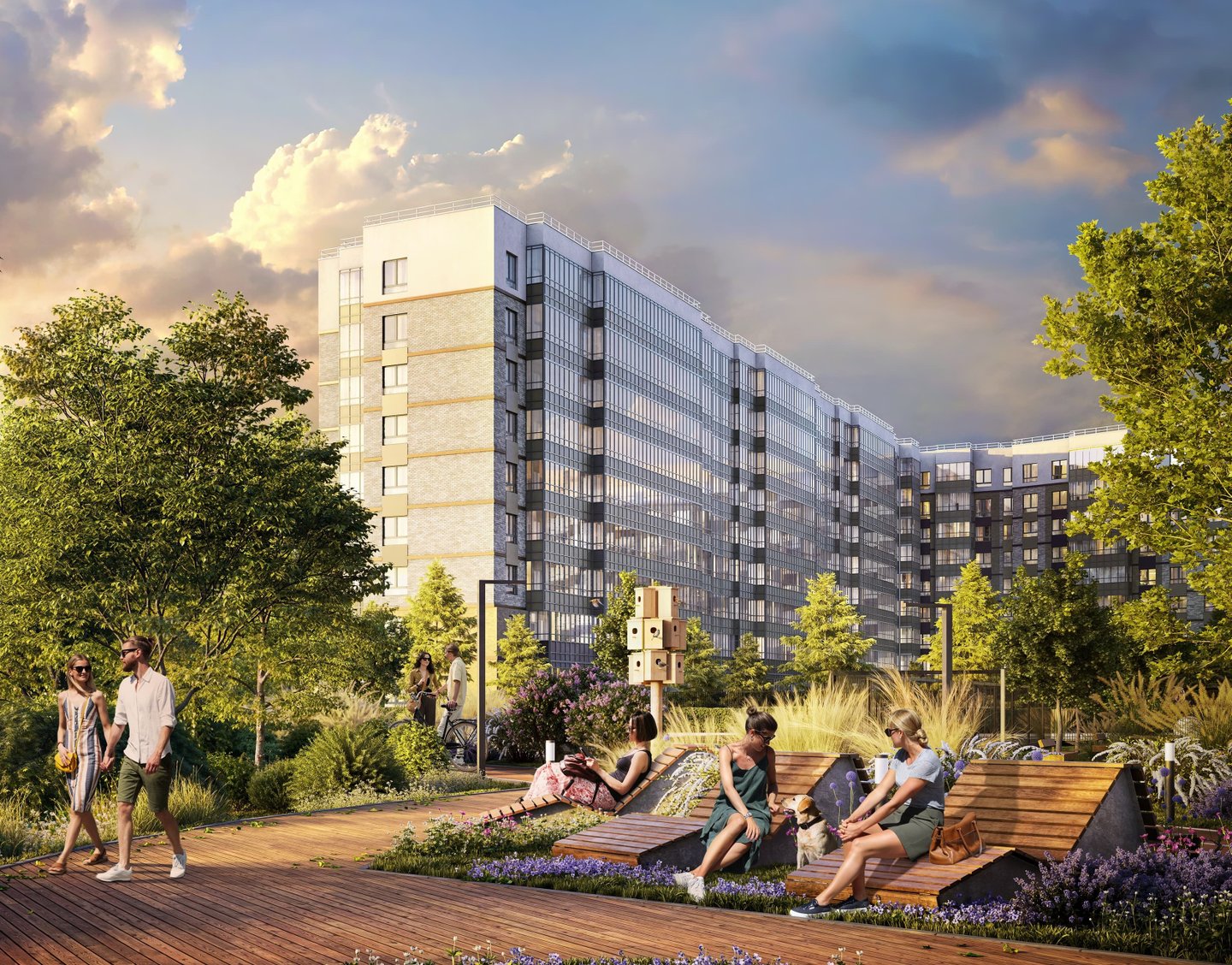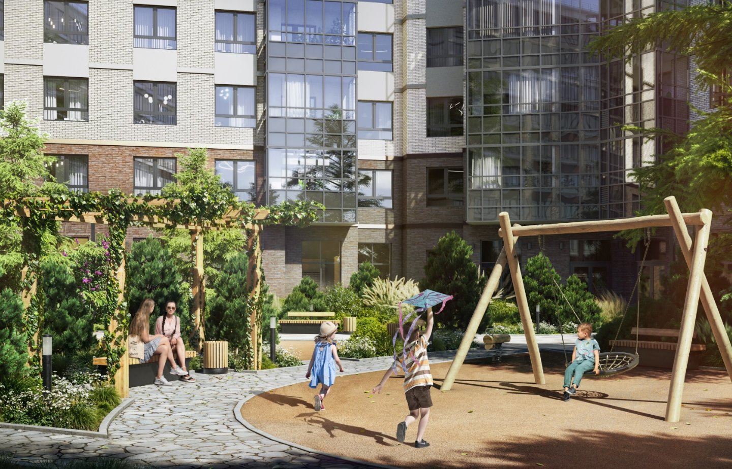 Двор каждого из четырех корпусов оформлен в своем, уникальном стиле и имеет собственное название — «Кедровый», «Кленовый», «Сиреневый», «Вишневый».